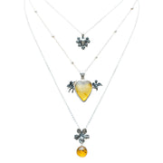 * Cadena 2: Corazón ámbar chico biselado y 2 querubines. * Cadena 3: Flor cerezo complementado con una moneda de ámbar engarzado.