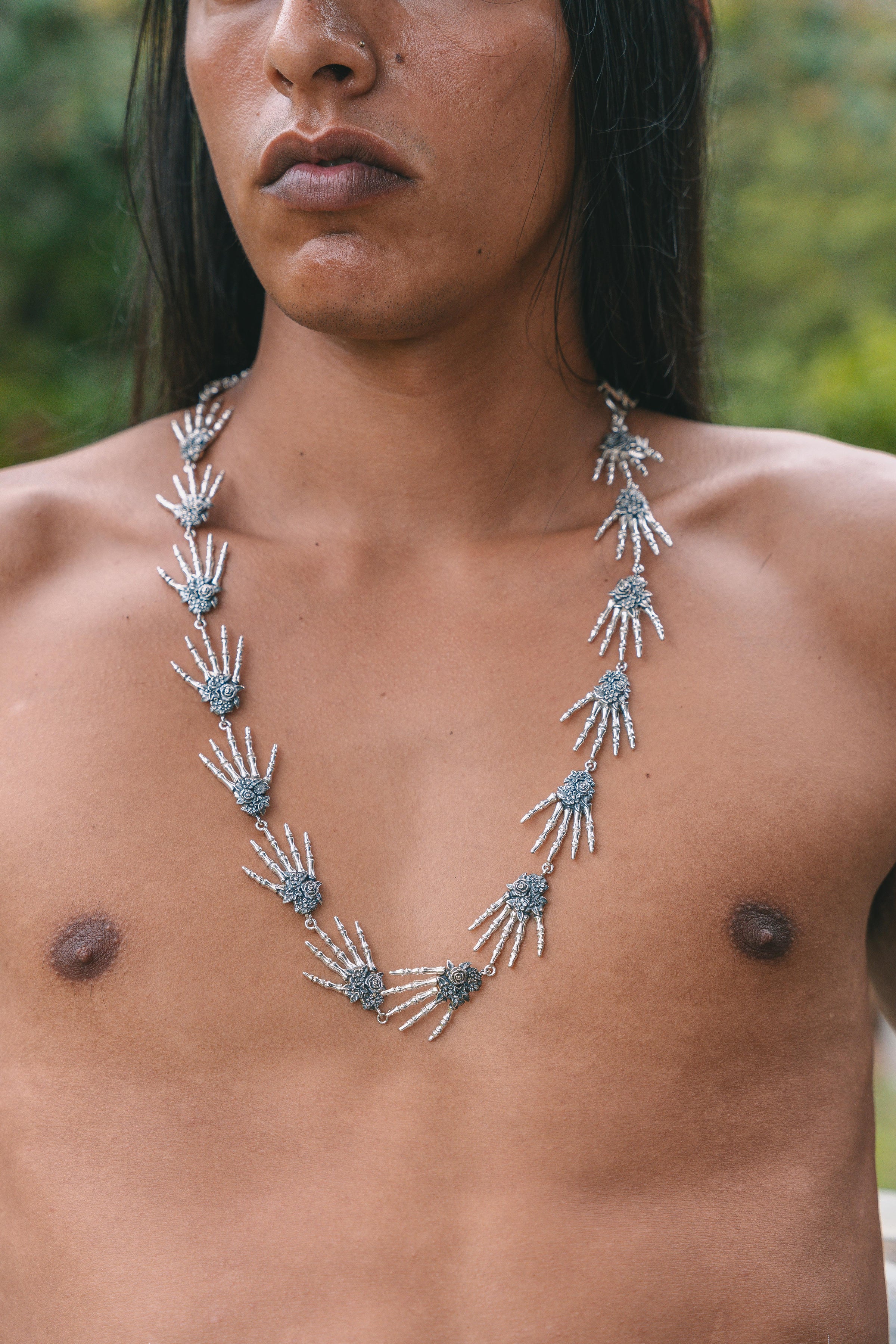 Collar largo edición especial formado por 16 manos de catrina.
