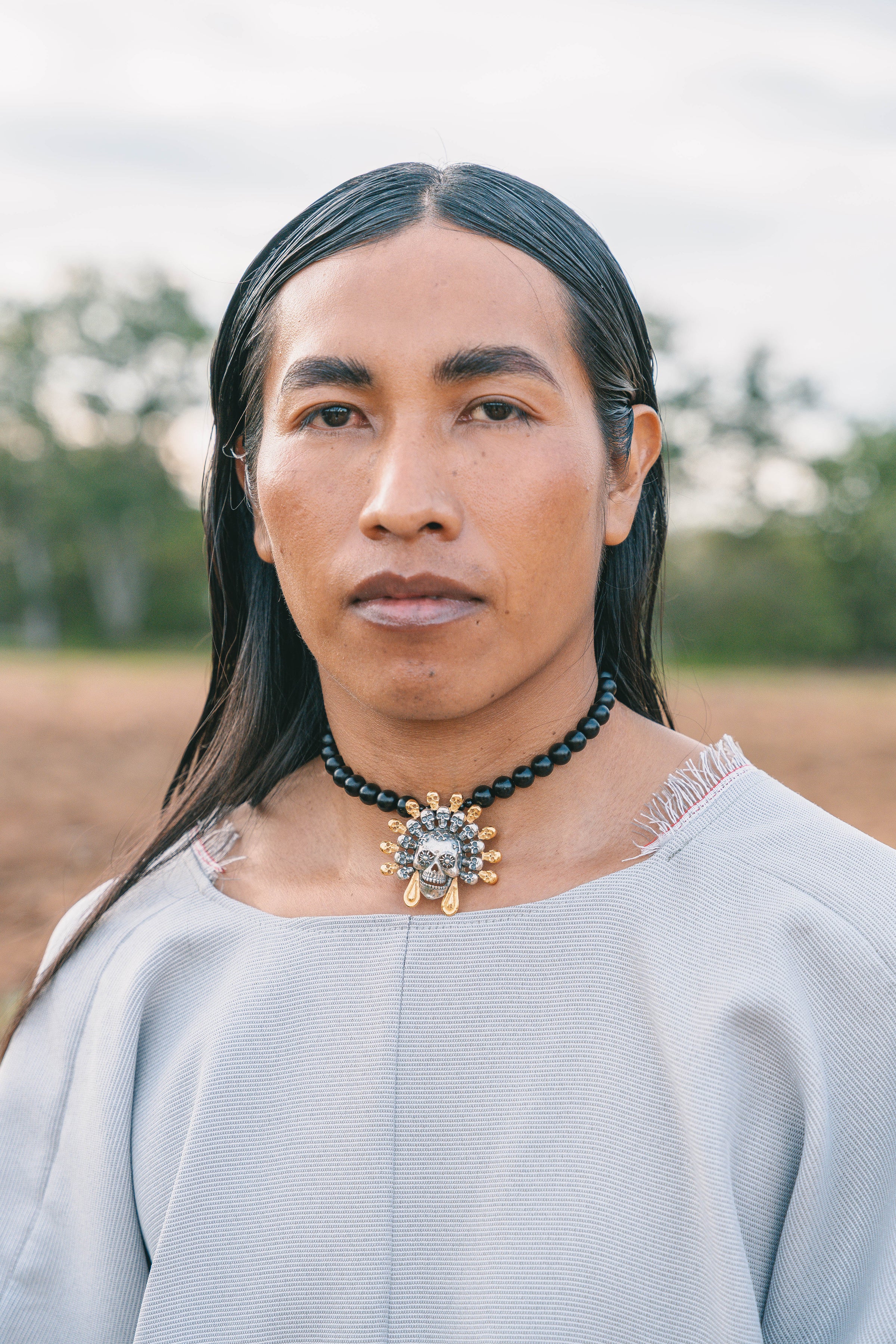 El Collar Cenizas y Huesos evoca el profundo simbolismo del tzompantli, representando la renovación a través del ciclo de vida y muerte. Esta pieza sofisticada recuerda el sacrificio ritual de los guerreros, cuyo tránsito asegura la continuidad de la vida. El oro, lejos de ser un simple material de riqueza, se asocia con las deidades solares y se utiliza como ofrenda sagrada, reflejando un valor espiritual y cultural profundo.