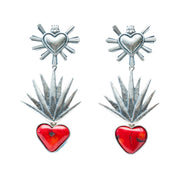 Aretes de poste iniciando por un corazón Querido México Mediano enseguida de un Agave Realista, iluminados por un potente color rojo gracias a un corazón coral en bisel.