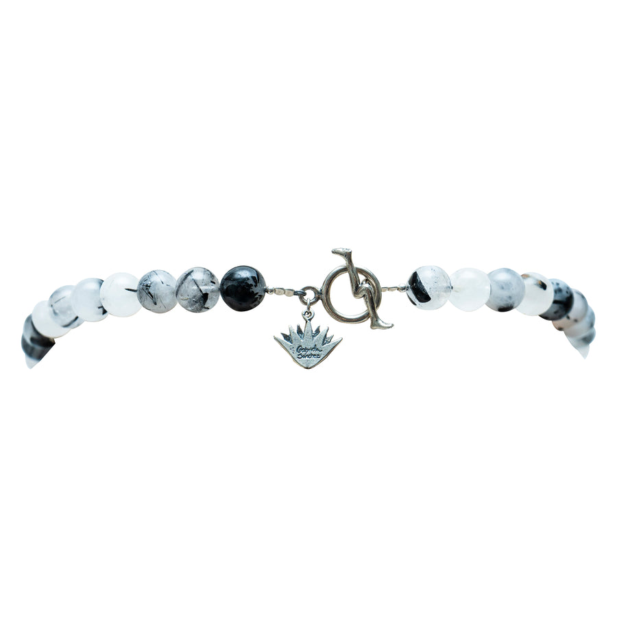 Collar de un hilo de cuarzo turmalinado con un cuarzo en el centro.