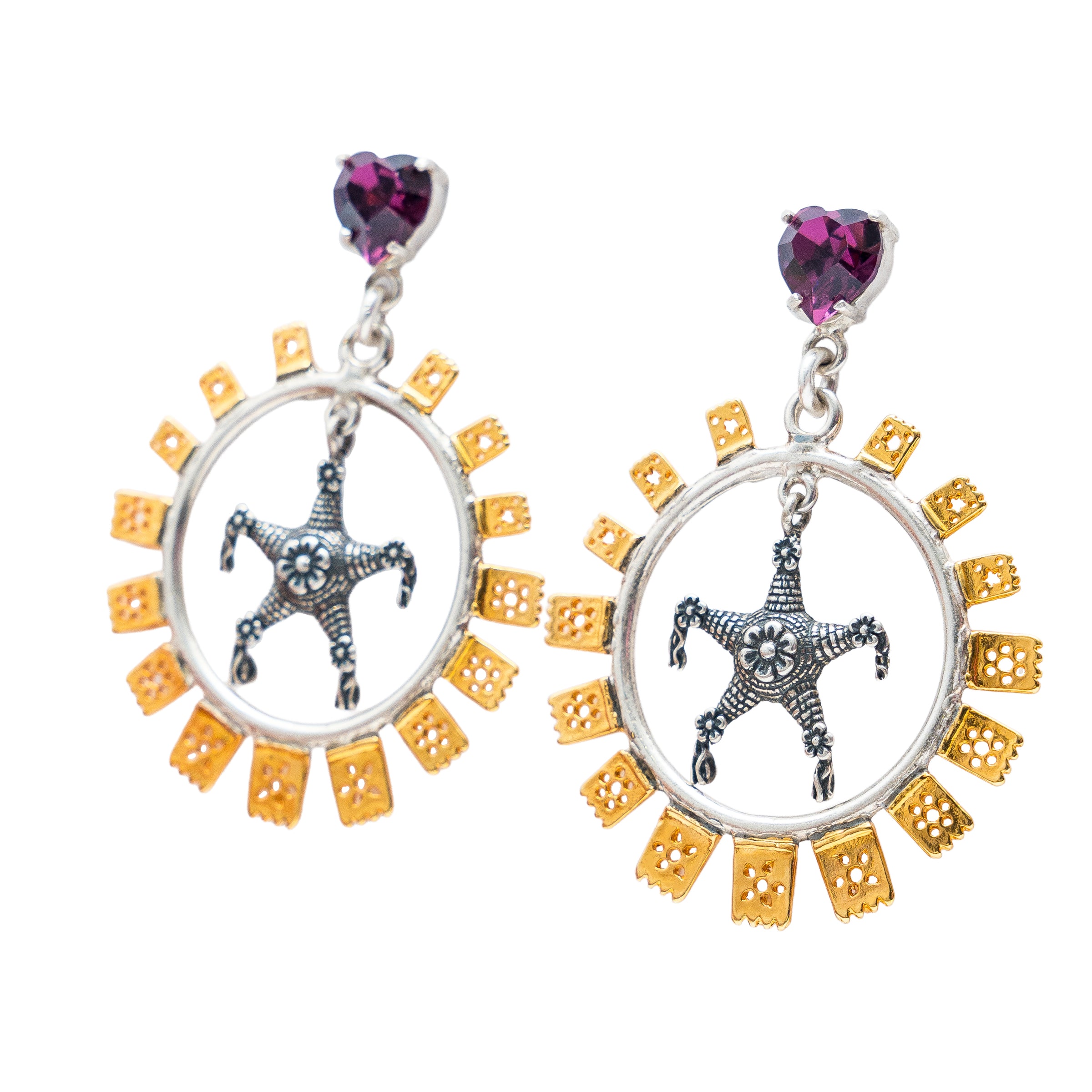 Arete de poste de infinito de papel picado bañado en oro de 24k con una piñata de cinco picos y un Swarovski color uva.