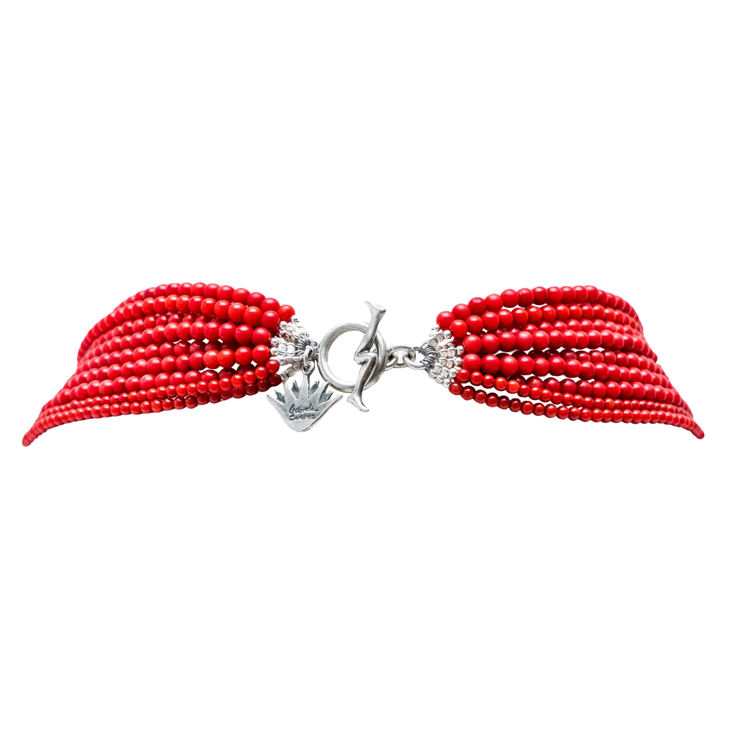 Gargantilla de 9 hilos de coral. Pieza de plata: Un corazón bordado