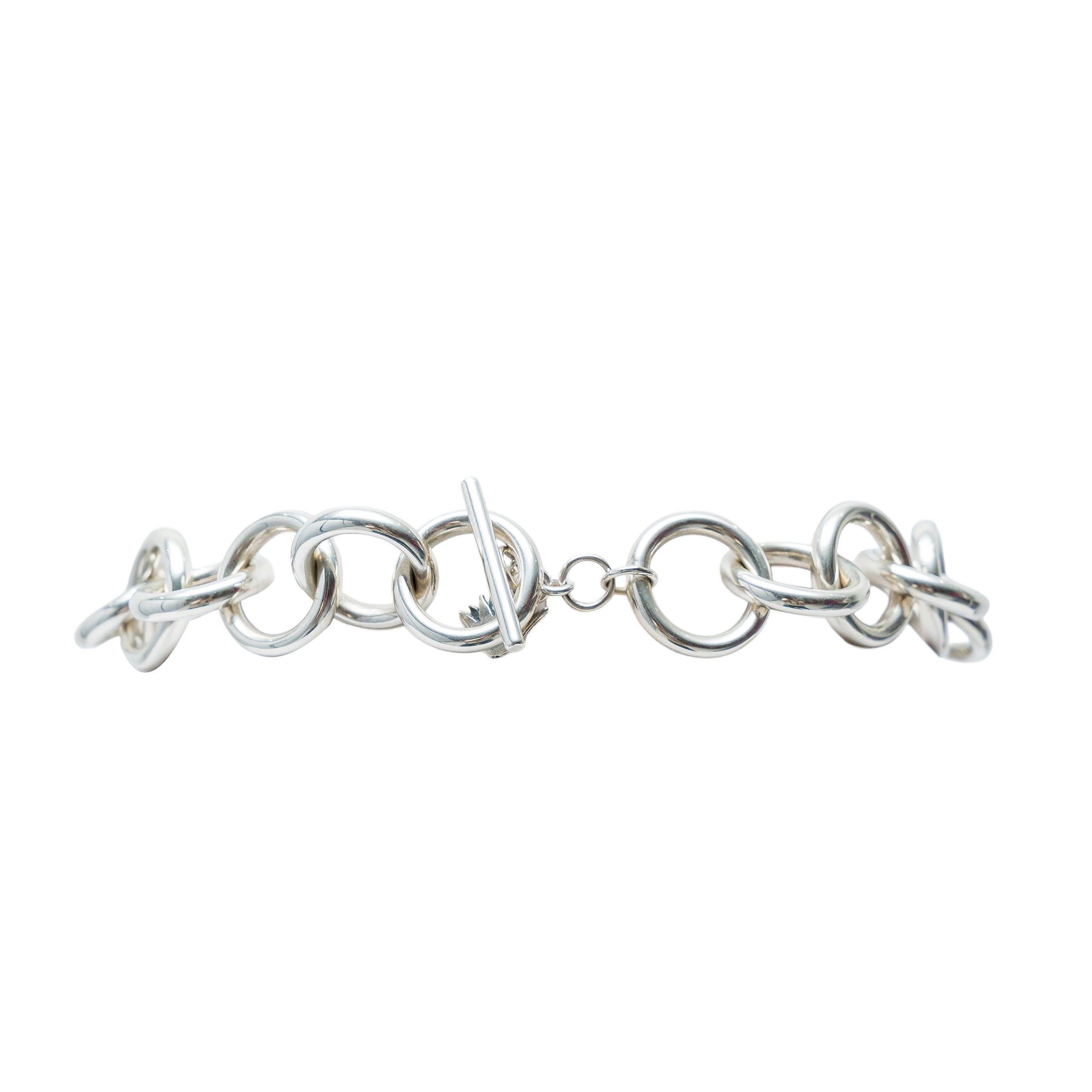 Collar edición especial de aniversario con eslabones circulares grandes de plata con dije bañado de oro de 24k de piñata con pompones movibles.