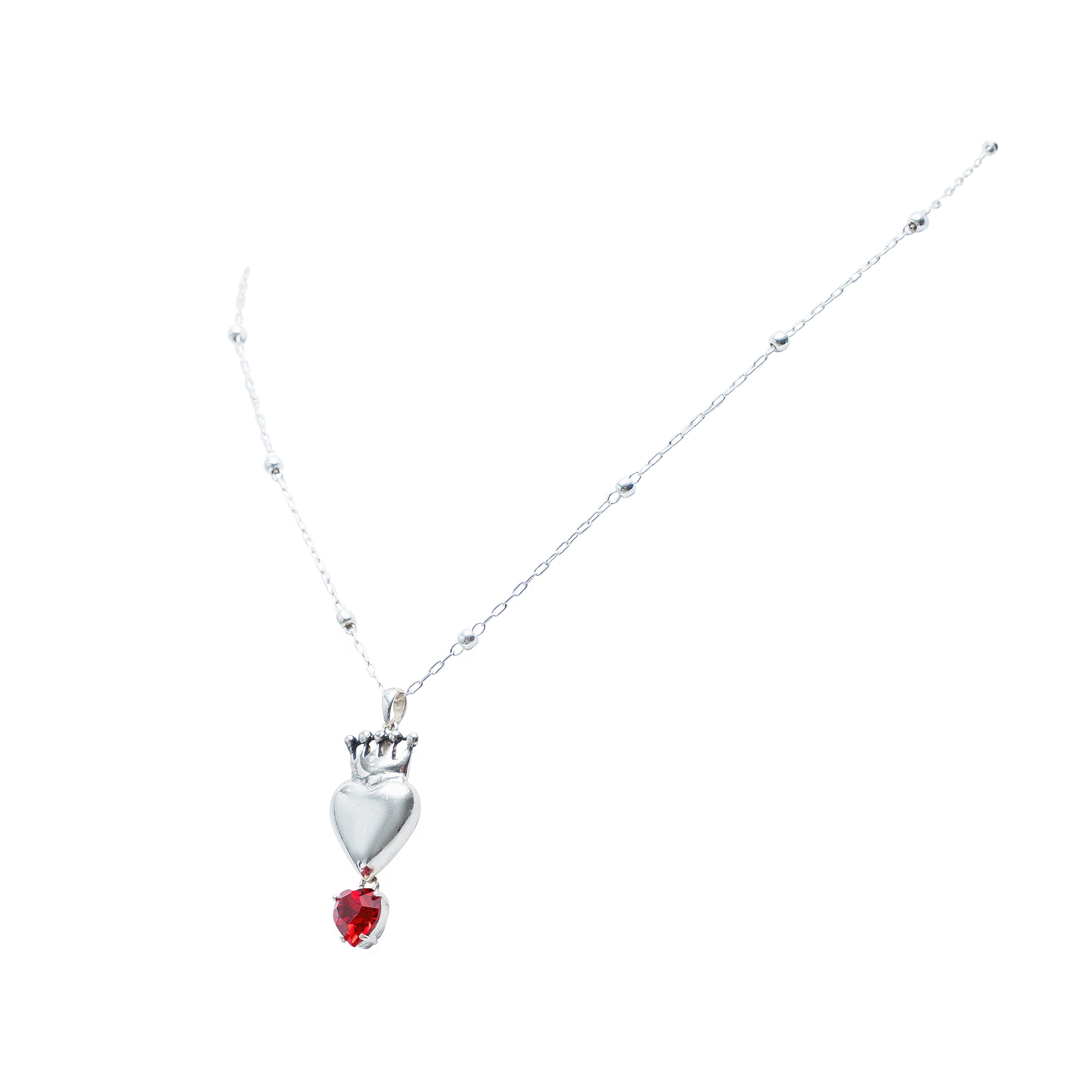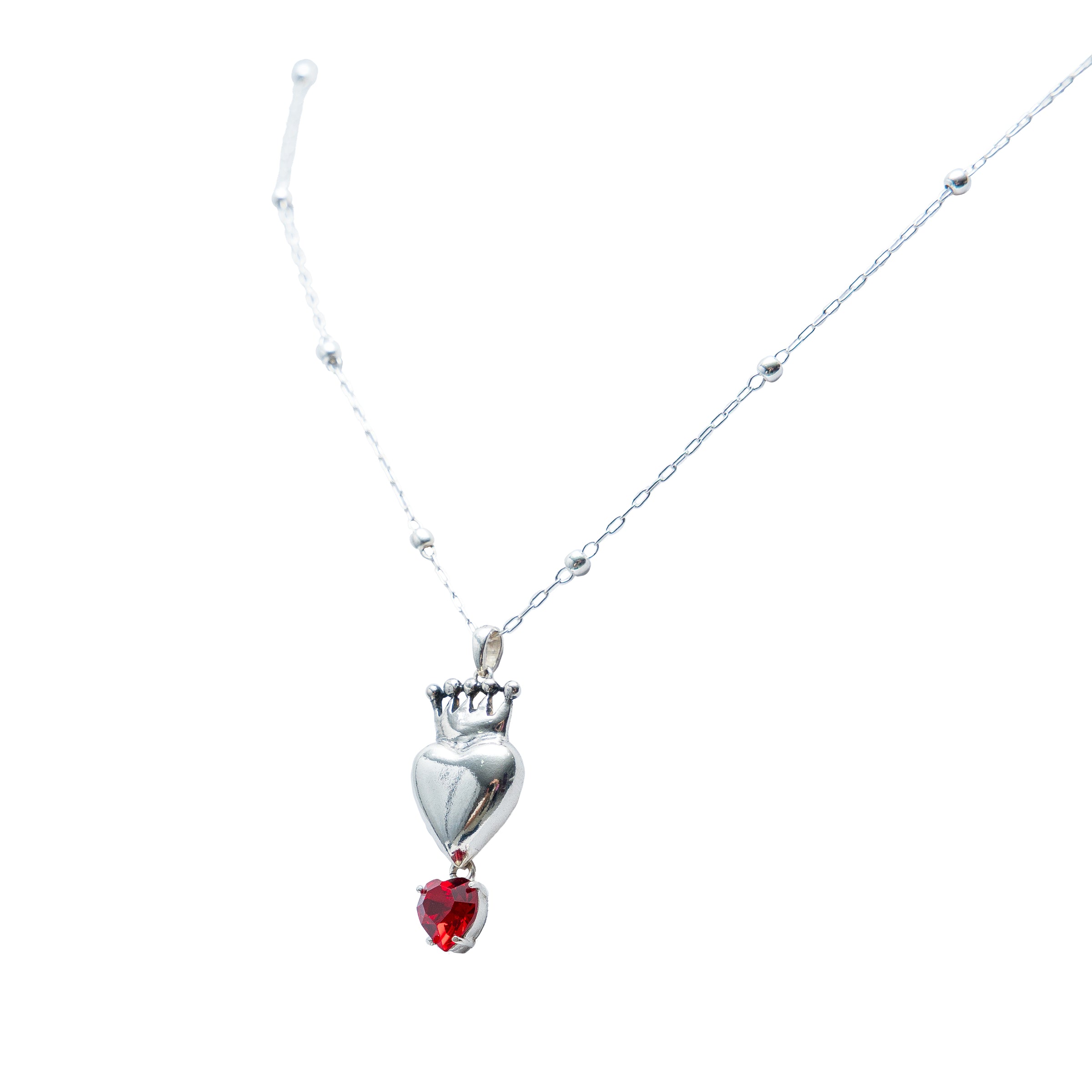 Dije corazón con corona con montura de corazón de Swarovski color cereza.