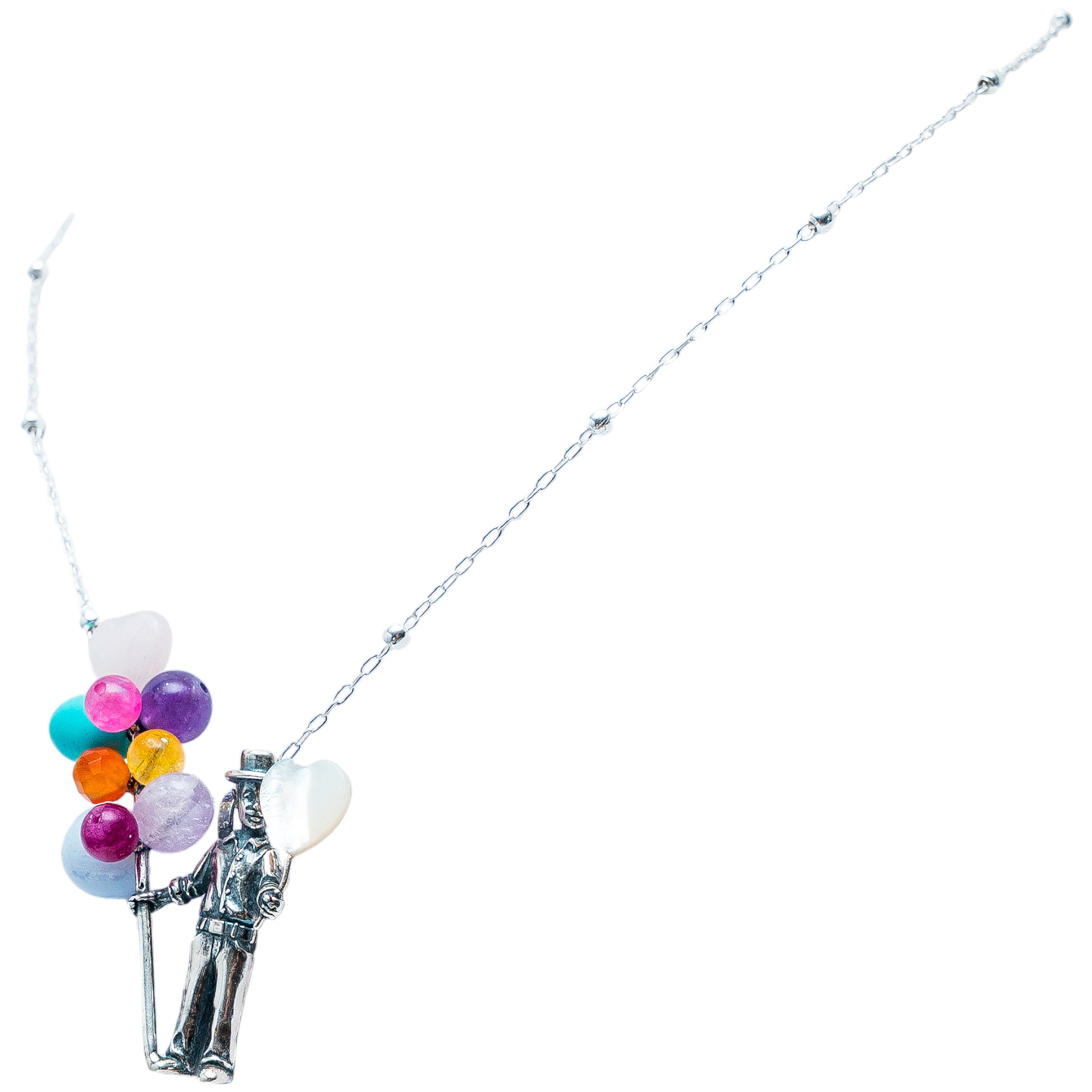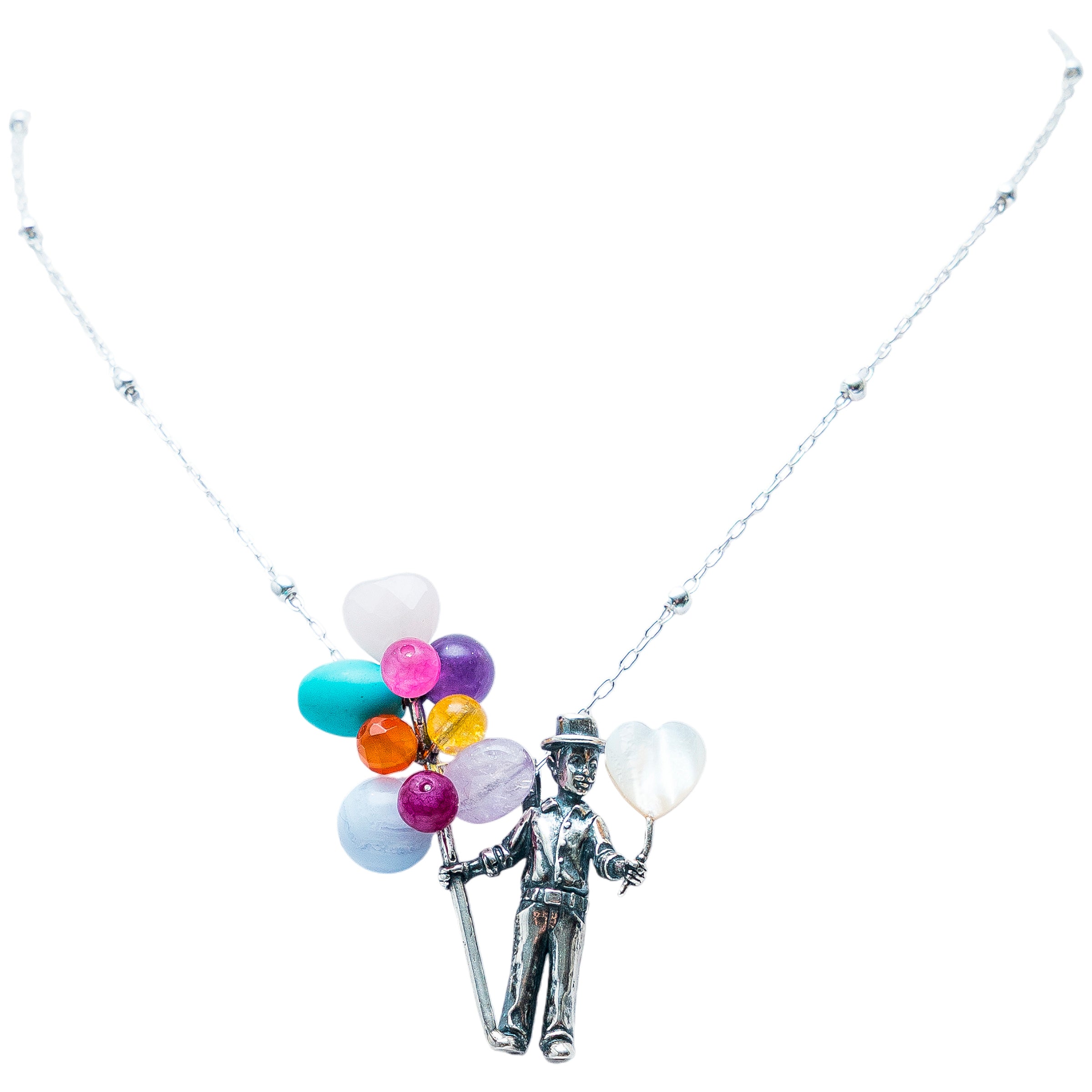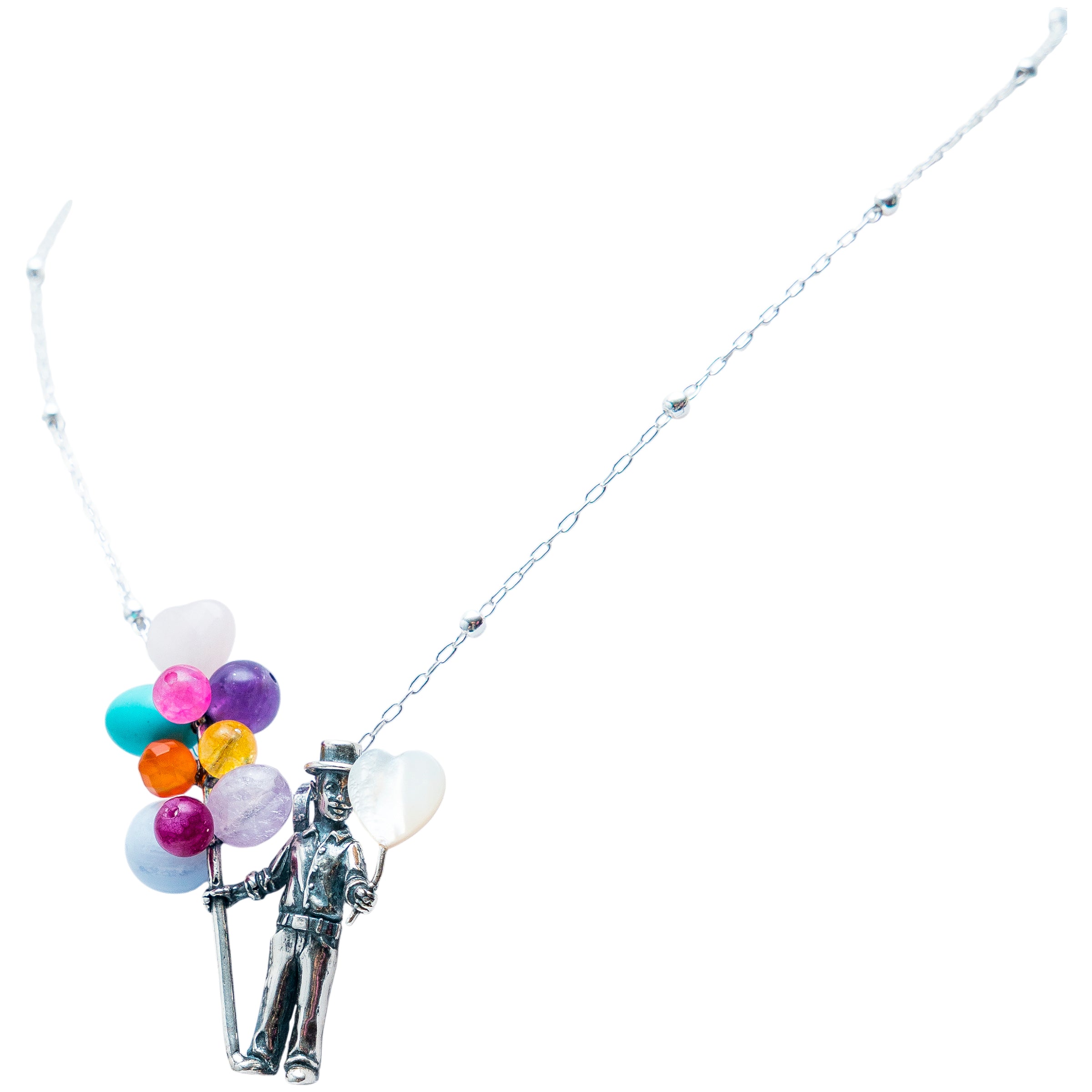 Un pequeño guardián sostiene globos de colores que abrazan el cielo.