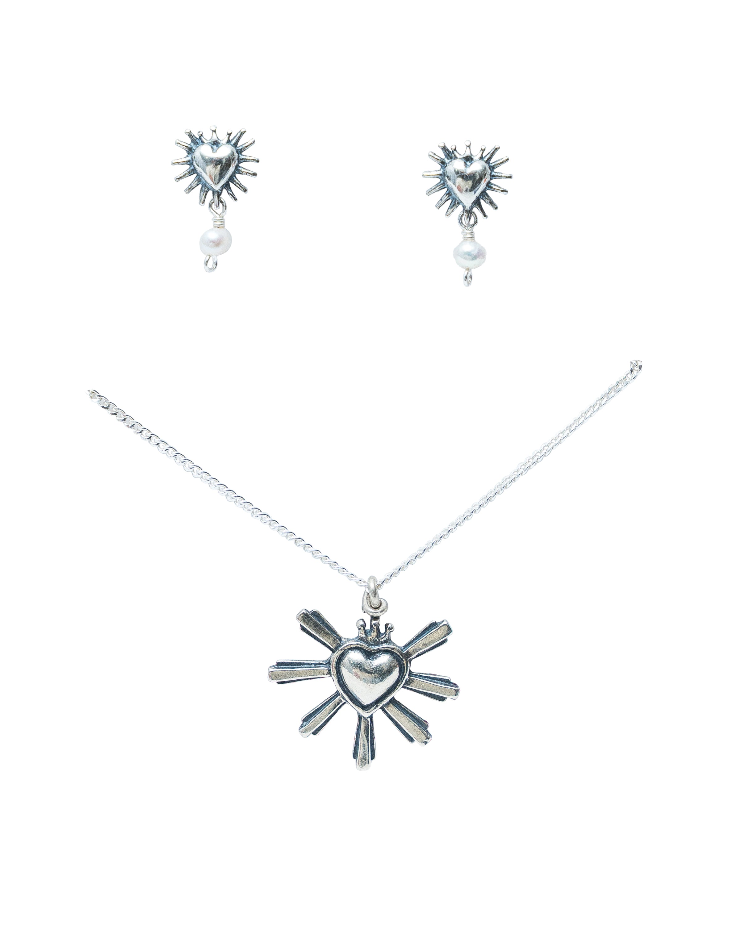 Aretes de poste corazón resplandor con perla engarzada y un dije de corazón querido México