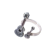 Anillo abierto ajustable con guitarra y guitarra mini.