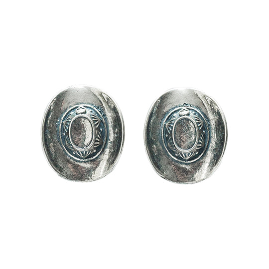 Aretes de poste de Texana en plata con detalles de agave y calavera.