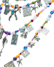 Espectacular Collar edición limitada 6 hilos en combinación de gemas naturales en confeti con muñeca de listones grande, papalote liso, piñata con bisel y 28 dijes juguetes varios.