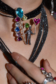 Collar edición especial formada por 12 hilos de spinel mini facetado, acompañado de un dije globero con Swarovskis como: púrpura, rosa baby, azul eléctrico, blanco, bugambilia, azul cielo, verde limón, verde pera y rosa.