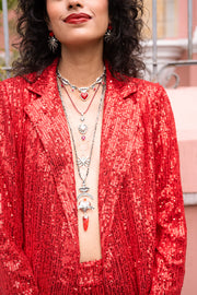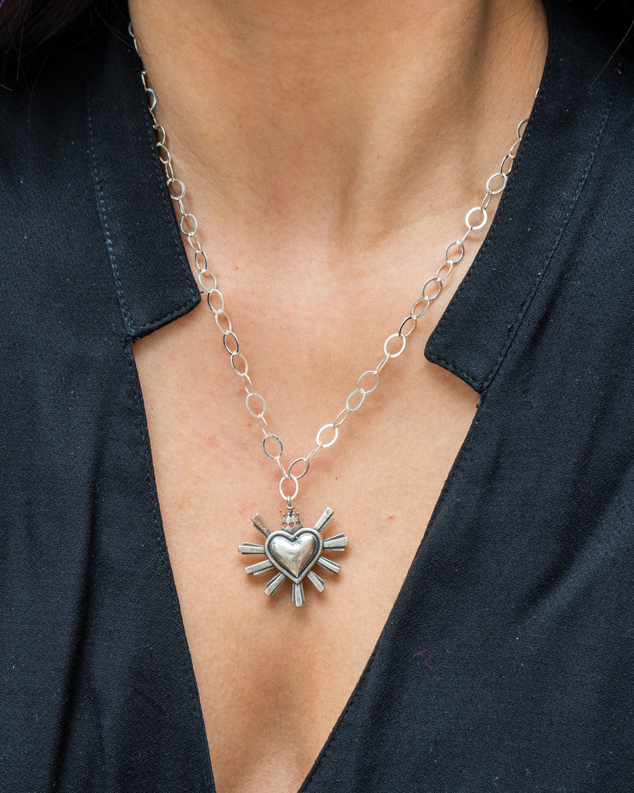 Collar largo de eslabones de plata con un dije de Corazón Querido México mediano.