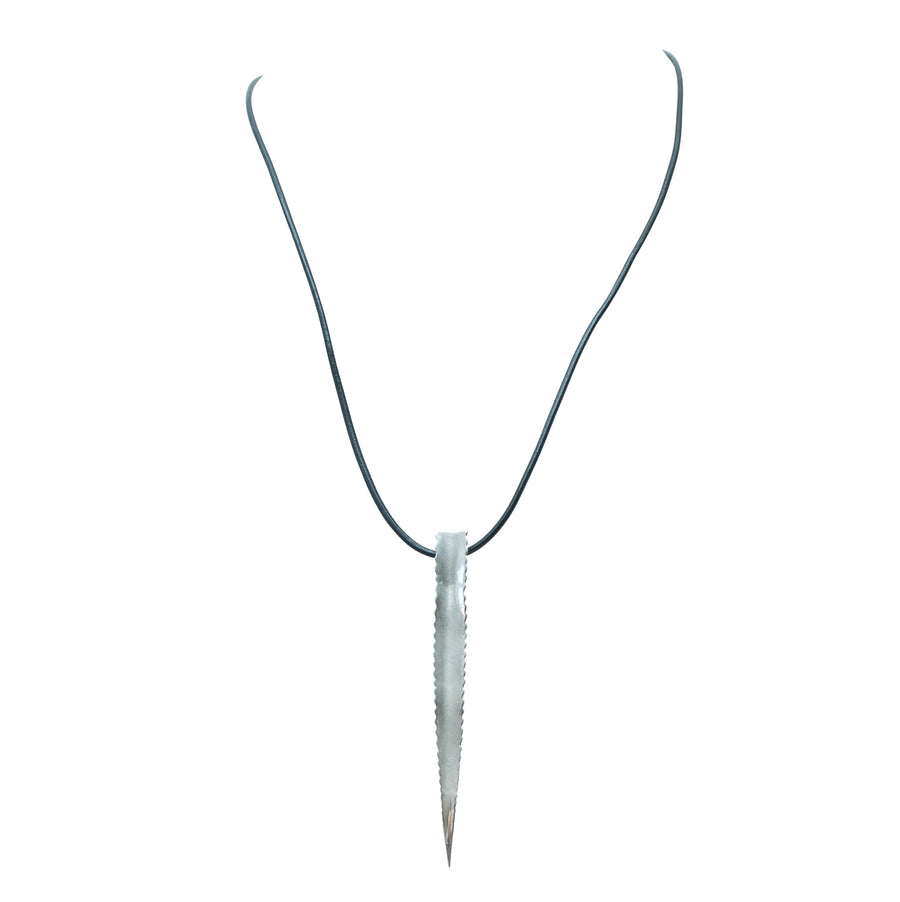 Collar edición especial largo de cuero con un dije de penca de Agave de plata grande.