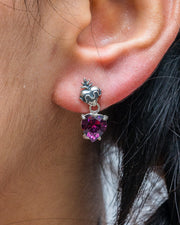 Aretes mini sagrado corazón y corazón de cristal Swarovski color morado.